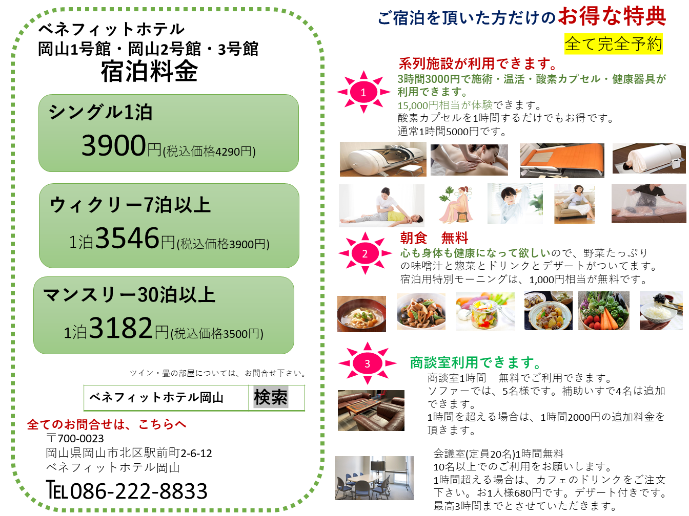 宿泊料金と特典